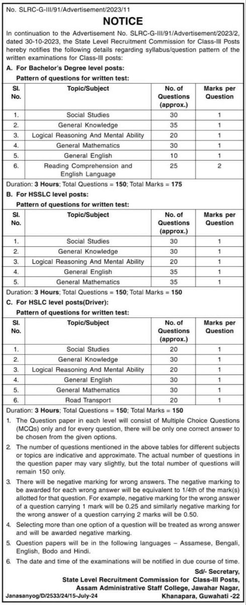 Syllabus for Grade III examination for Assam direct recruitment examination. pic.twitter.com/nrApA9s7aD